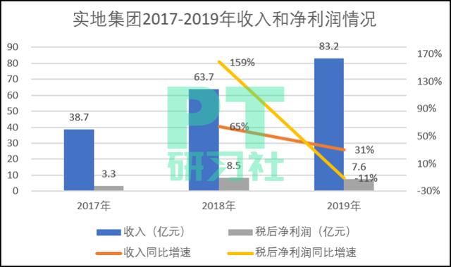 实地集团最近三年的营业收入成功实现“三连跳”。从2017年的30多亿,到2018年的60多亿,再到2019年的80多亿,营收复合年增长率达46.6%。