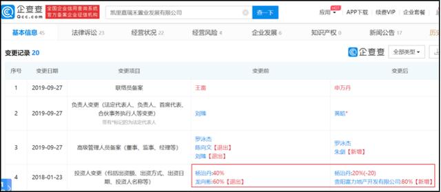 企查查显示,2018年1月,龙向彬将自己在凯里嘉瑞禾置业公司的60%股权转让给了富力地产。而网传龙茜与张量于2017年5月举办了婚礼。这么看,张量迎娶龙茜像一场门当户对的商业联姻。