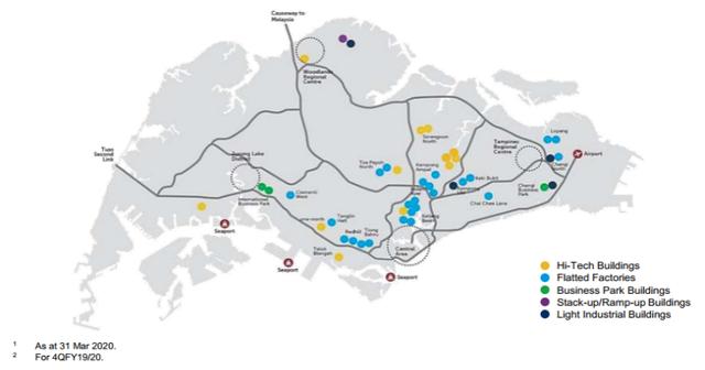 截至2020年3月31日,丰树工业信托(MIT)的总资产规模约为59亿新元(约合42.36亿美元),物业组合包括新加坡的87个工业物业和北美的27个数据中心(通过与丰树投资公司的合资企业),总面积约2090万平方英尺(约合194.2万平方米)。