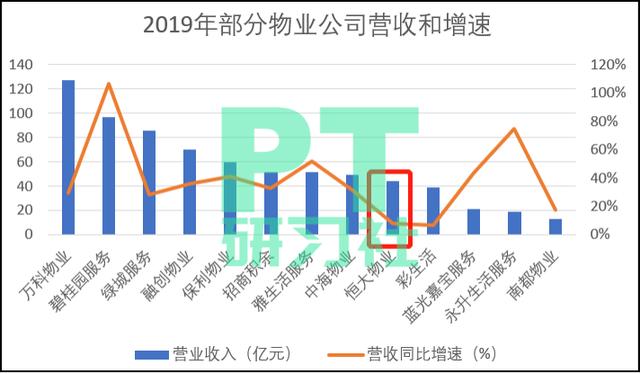 而从平均增速来看,排在恒大之前的八家物管公司2019年营收的平均增速超过44%,远远高于恒大物业的营收增速。