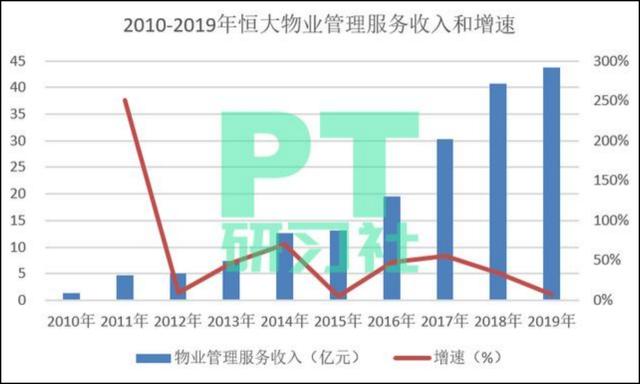 虽然营收占比低、增速也远不及同行,但恒大的物管业务俨然成为仅次于物业销售的第二大收入来源。