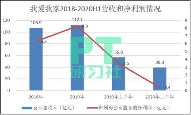 上半年,我爱我家实现营业收入39.33亿元,较去年同期下降30.75%;营业利润7259.12万元,较去年同期下降86.69%;归属母公司所有者的净利润4041.41万元,较去年同期下降89.39%。