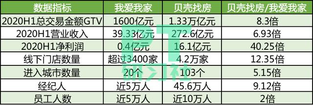 上半年,我爱我家二手房业务和新房业务共实现总交易金额(GTV)1600亿元。同期,贝壳找房达成了1.33万亿元的平台成交总额(GTV)。从上半年的GTV来看,贝壳找房全平台的GTV是我爱我家的8.3倍。