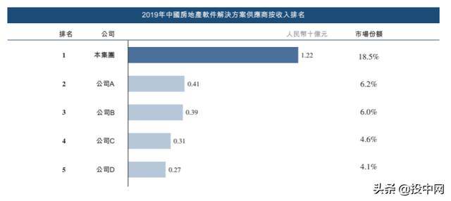 目前,中国房地产开发商软件解决方案市场相对集中。截至2019年底,该行业的市场参与者超过100名,而在2019年,若按收入计算,前五名玩家占据了约39.3%的市场份额,其中明源云以18.5%的市场份额排名第一。