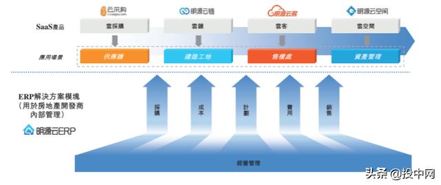 招股书显示,明源云的ERP解决方案使房地产开发商可以有效地整合及管理企业资源,并优化核心业务功能,包括销售及营销、採购、成本管理、项目管理、预算以及房地产资产管理。
