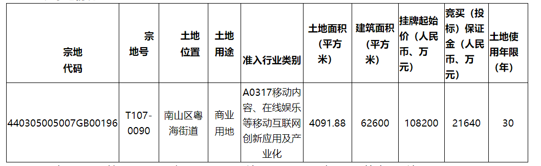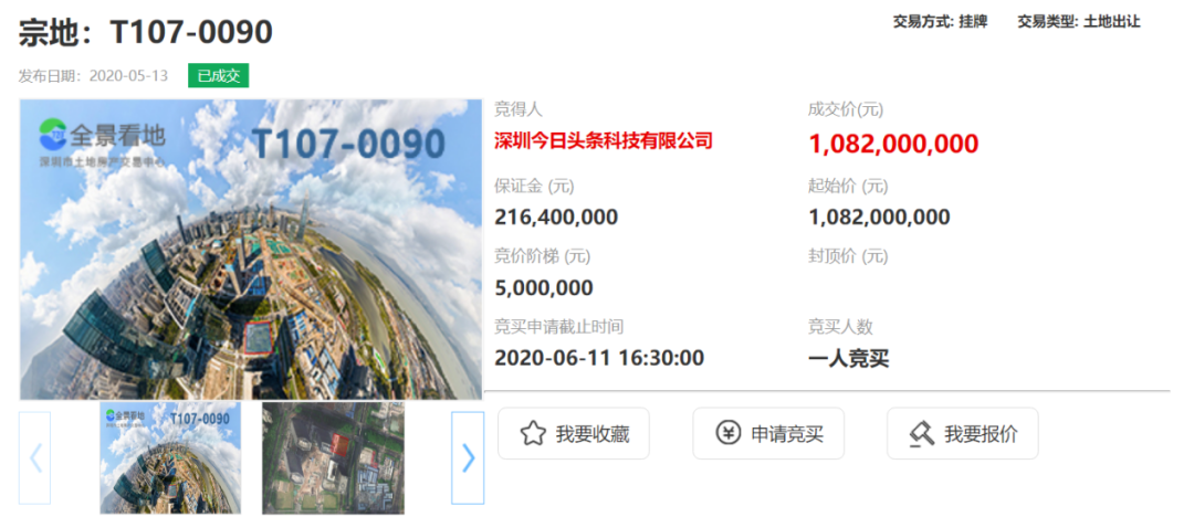 图:字节跳动收购深圳后海总部基地一宗商业用地
