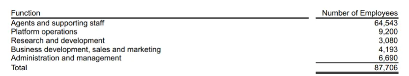 图:截止2020年6月底贝壳员工构成(来源:公司招股书)