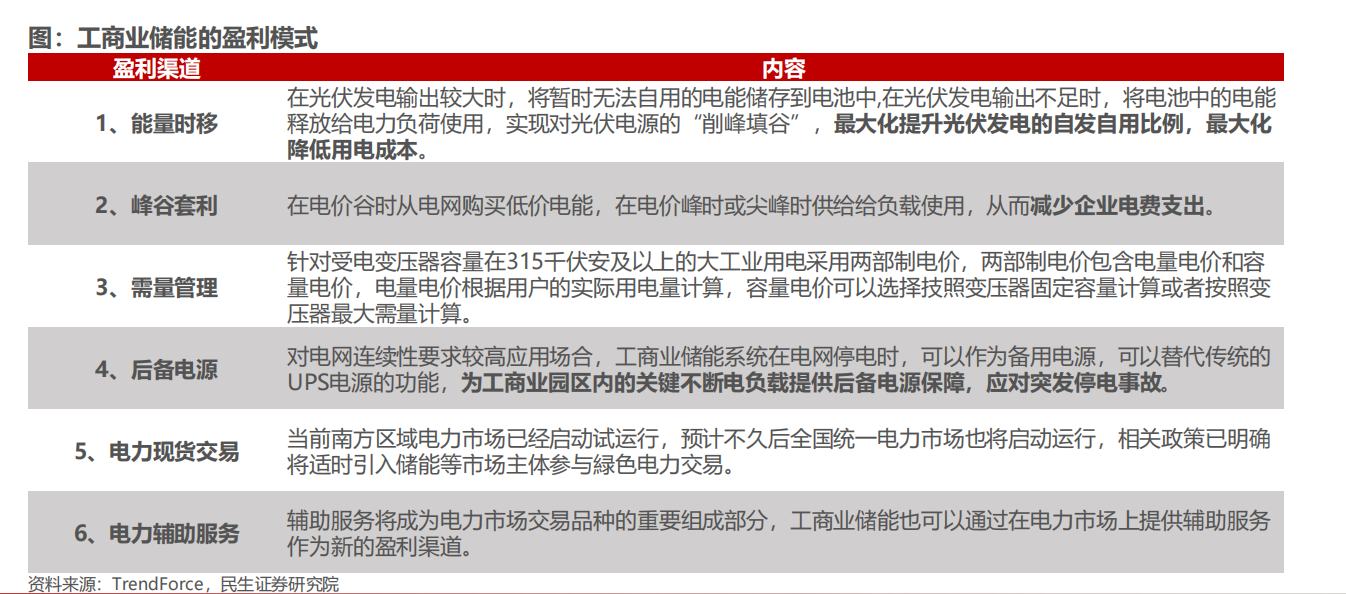 所谓工商业储能,是指容量及功率较小、用于工商业的储能系统,目前主要通过“低电价时从电网充电,高电价时放电使用”的方式来为用电企业节省成本。