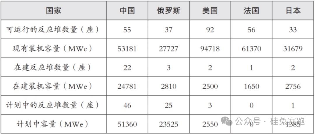 美国在运行和在建的核反应堆 来源:全球核能发展动向及启示(2023)