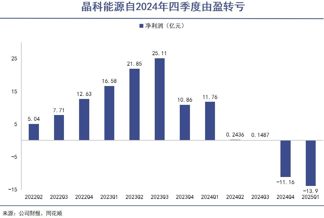 凭借先进的TOPCon产能,晶科在风声鹤唳的2024年依然能实现将近1个亿的盈利(扣非后亏损9.32亿元)。