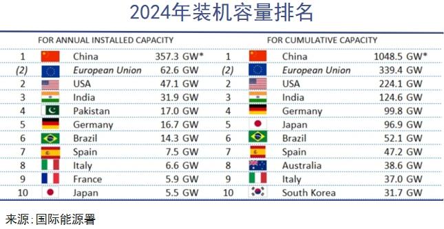 中国制造业的强大正向每一个产业蔓延。截至2024年底,中国光伏装机规模已占据全球近半壁江山,总装机规模是美国的5倍,日本的11倍。