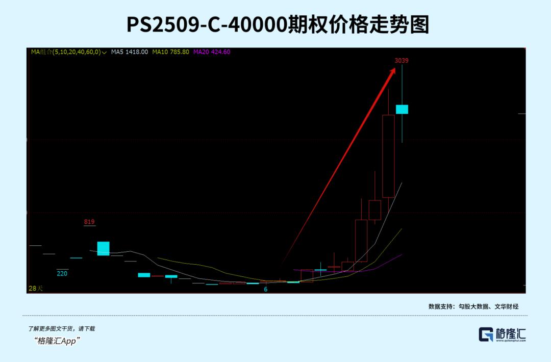 短短八个交易日,主力合约价格从3.2万元暴力拉涨至4.1万元上方,累计涨幅近30%。商品期货有11倍左右的杠杆,实际回报可能超300%,而期权市场更为暴力,深度虚值期权涨幅超100倍的也不少见。
