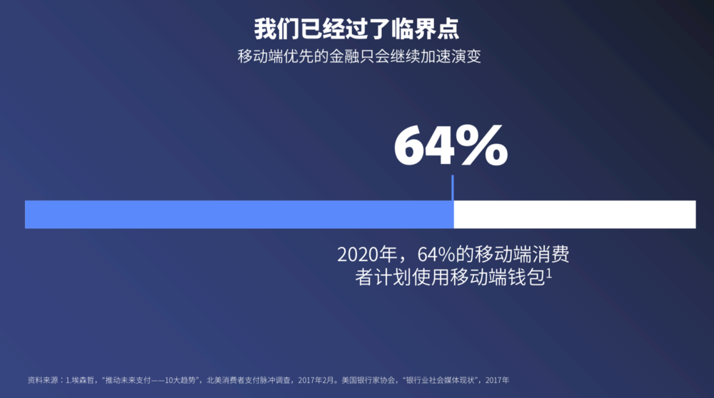 2020年,64%的移动端消费者计划使⽤移动端钱包;
