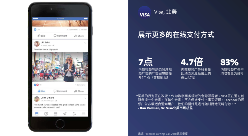 Visa通过Facebook的短视频广告实现良好的营销效果