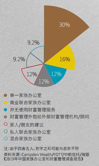 调研中大约64%的参与者表示,他们的主要财富管理工具是家族办公室:单一家族办公室(30%),商业联合家族办公室(16%)以及私人联合家族办公室和混合家族办公室(各占9.2%)。