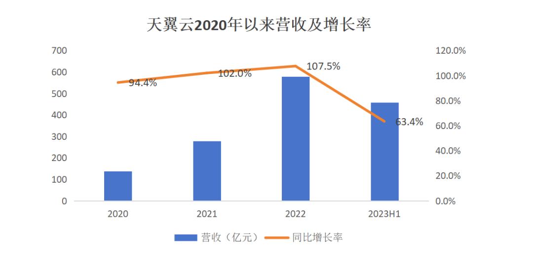 但就在半年之后的2023年上半年业绩说明会上,柯瑞文对于天翼云分拆上市的话题表示,“有打算把云、网隔离开,但还没到这个时候。”而这也意味着天翼云上市的终止,究其原因,上市暂缓或与业绩的降速有着脱不开的关系。