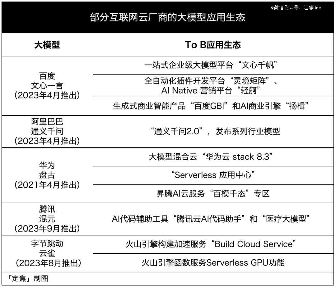 王庆告诉「定焦」,公有云通过To B数字服务提供的Pass或SaaS(软件即服务)回收价值效率低,大模型能给云厂商带来更多变现可能。