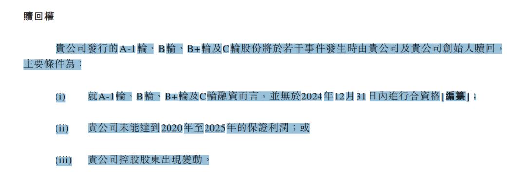 在对赎回权解释中提到,若声通科技未能在2024年12月31日内进行合资格首次公开发售;未能达到2020年至2025年的保证利润;控股股东出现变动,上述情况触发赎回条件。