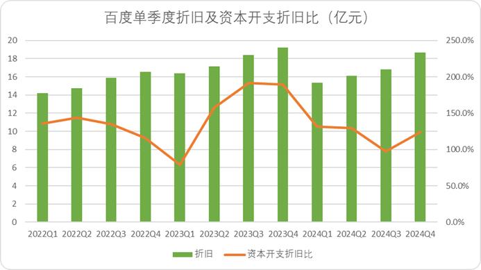 同时,百度也没有出现明显的折旧费率变动,以资本开支折旧比来看,基本上处于维持性资本开支的阶段,似乎感受不到迈入新一轮资本开支周期的潜在动向。