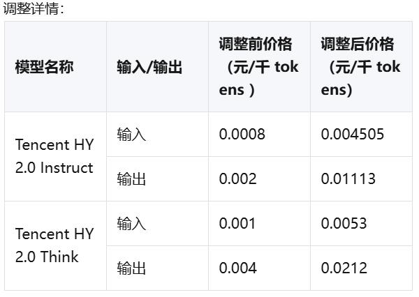 根据公告,具体安排,一是公测模型结束免费,GLM 5、MiniMax 2.5、Kimi 2.5模型将于3月13日结束免费公测,转为正式商用服务;二是变更为对混元系列模型Tencent HY2.0 Instruct与Tencent HY2.0 Think服务进行涨价,部分模型涨幅超4倍。