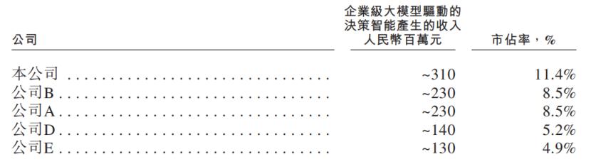 企业级大模型驱动的决策智能市场的竞争格局,来源:招股书
