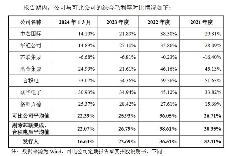 报告期内,新芯股份的毛利率为32.11%、36.51%、22.69%、16.64%,整体来看,公司毛利率水平处于同行业可比公司区间范围内,变动趋势与同行业可比公司基本一致。