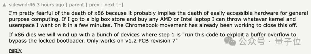 有人甚至担心,放弃x86意味着放弃对通用计算硬件的掌控,被ARM控制的未来可能变得更加封闭。
