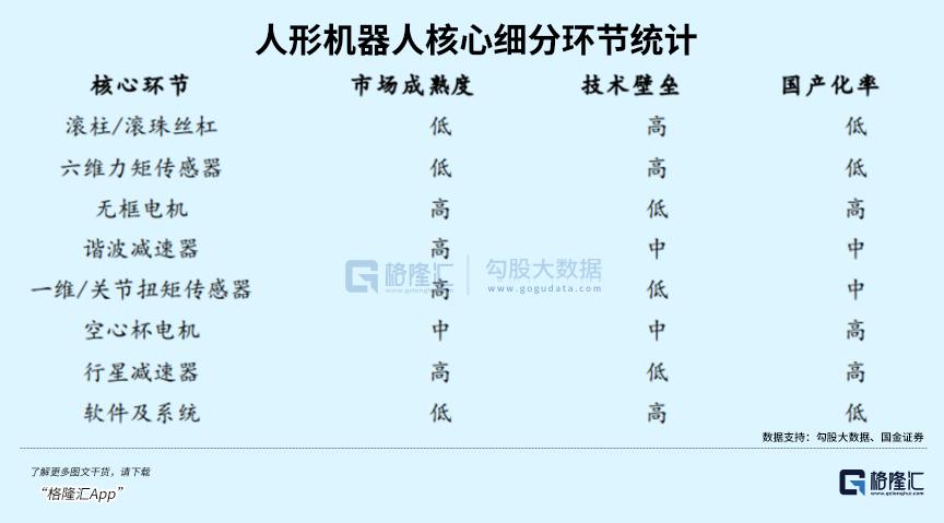 其中,滚柱/滚珠丝杠、力矩传感器、软件及系统竞争壁垒最高、国产化率低,且有实力的企业并不多。这或许也是投资机会最大的细分领域。