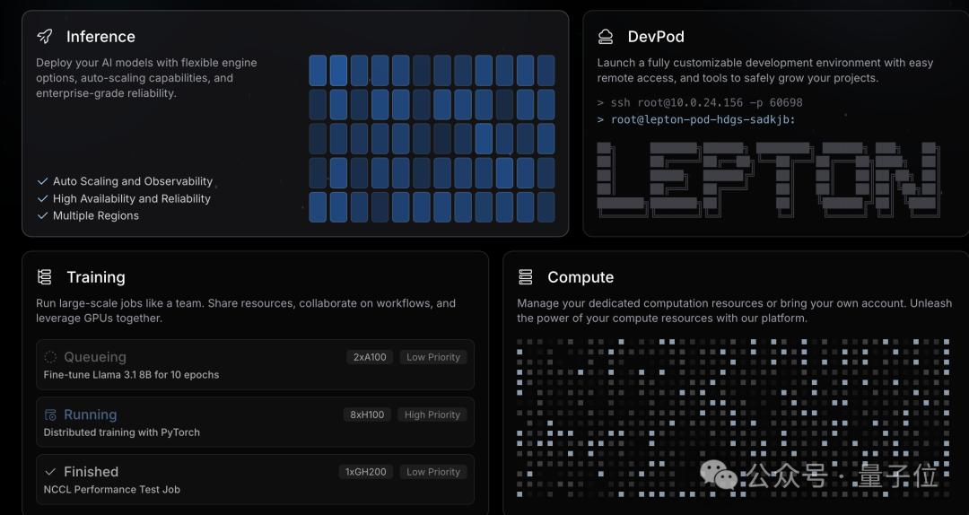 通过简化AI的训练和部署,LeptonAI让用户可以专注于产品部分。