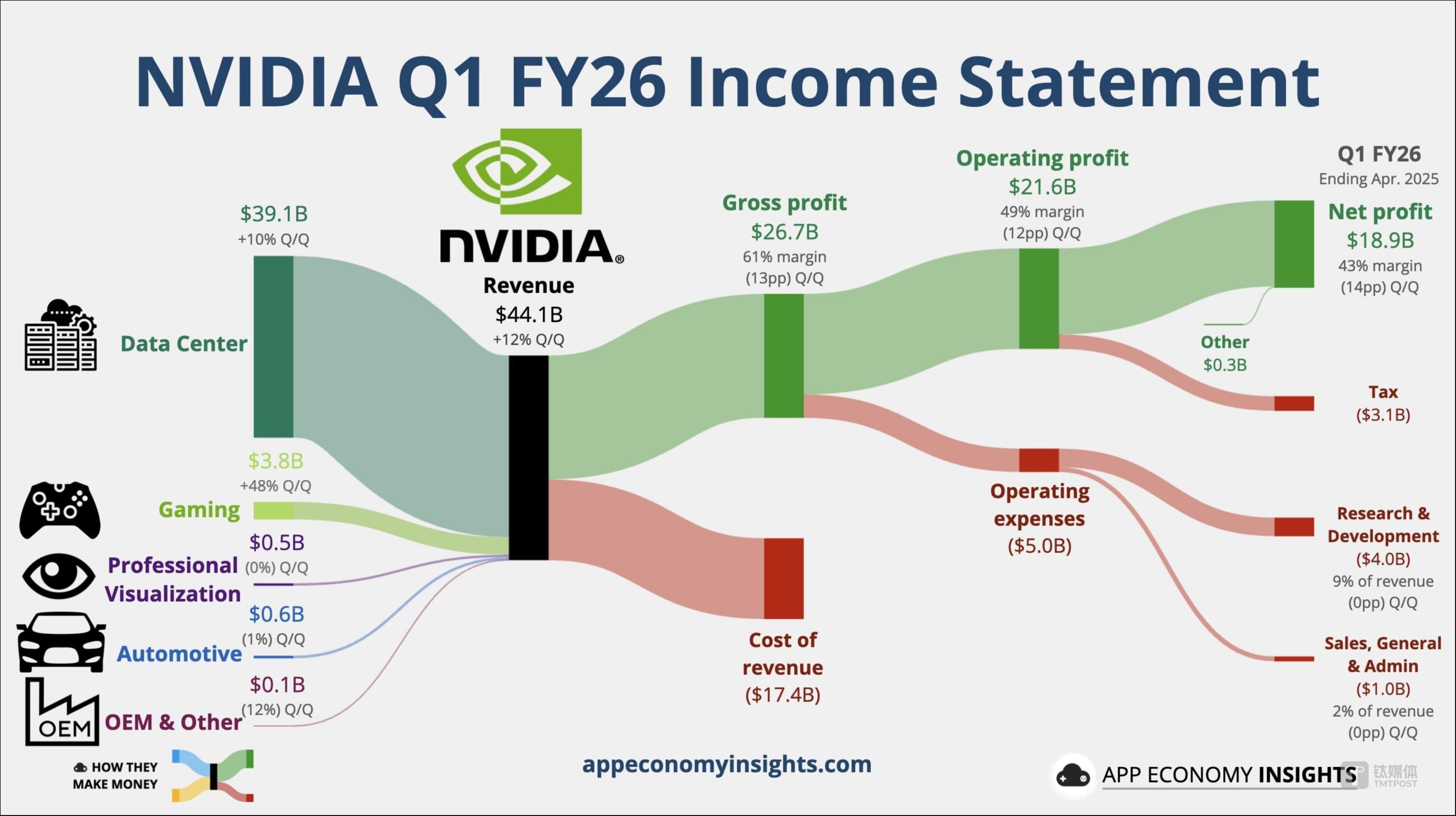 北京时间5月29日上午,英伟达发布2026财年第一季度(2025自然年第二季度)业绩报告,收入利润仍在上涨。