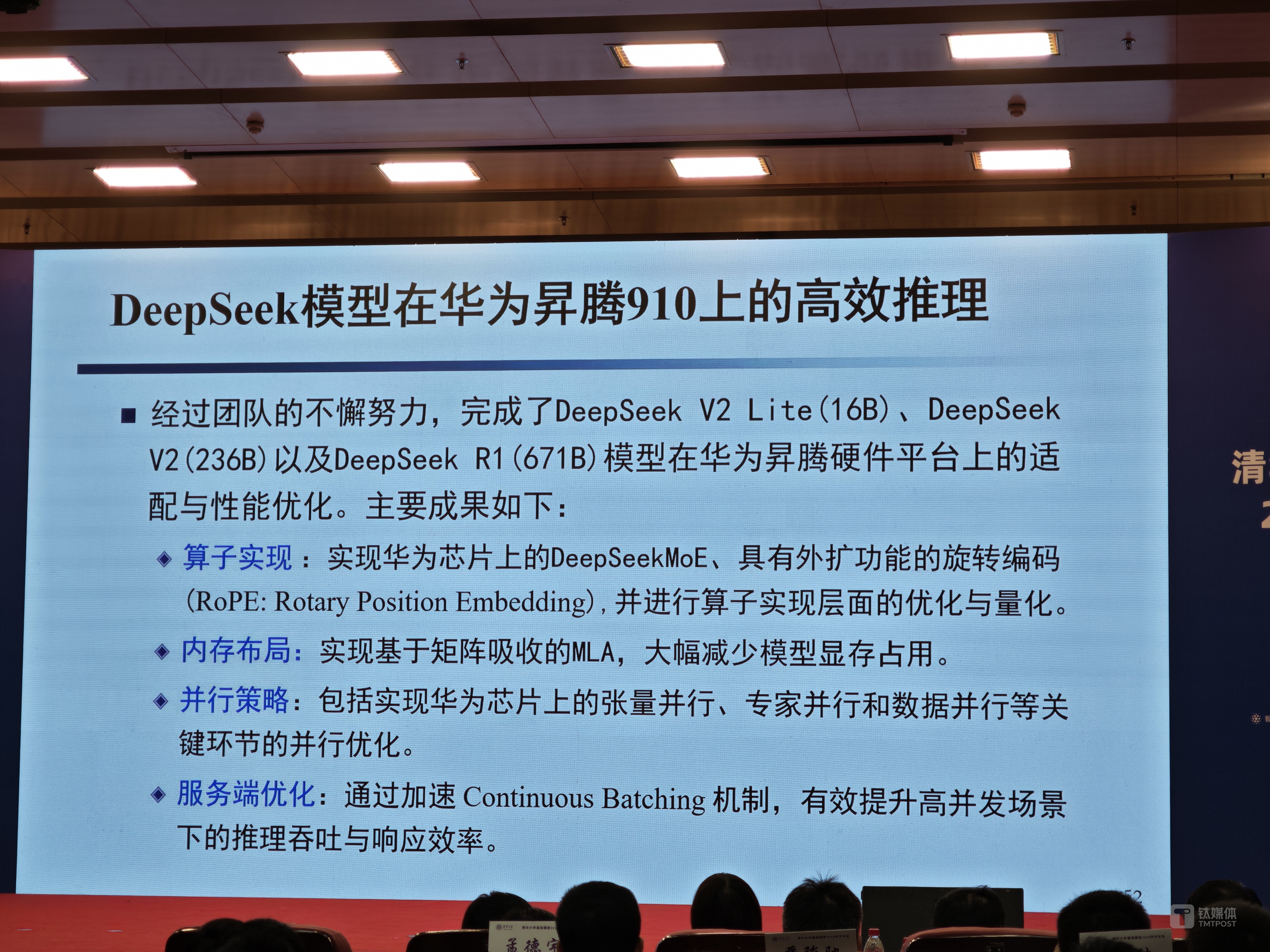 就在5月29日一场学术活动上披露,DeepSeek模型已经在华为昇腾上进行了高效推理。通过对模型算子权重进行Int4量化优化,显著降低现存占用,首次实现单台华为8卡服务器上的DeepDeek-R1的推理,同时在DeepSeek V2推理性能比vLLM昇腾版本在不同请求下平均提升88%以上。