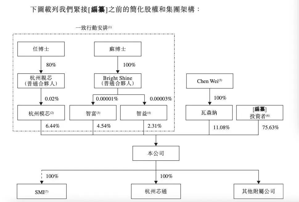 IPO前,杭州模芯、智益、智富(均为芯迈半导体的雇员股份激励计划平台)直接合持股约13.29%。