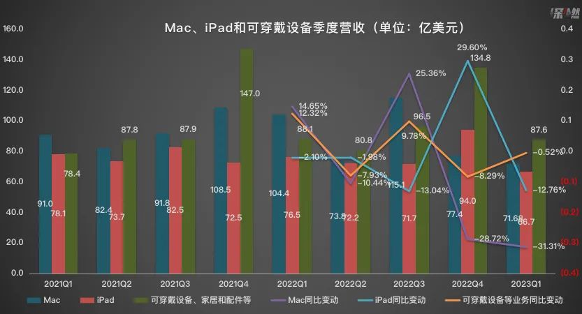 除了iPhone之外,苹果其余几大硬件业务线,在一季度表现都不算太好。