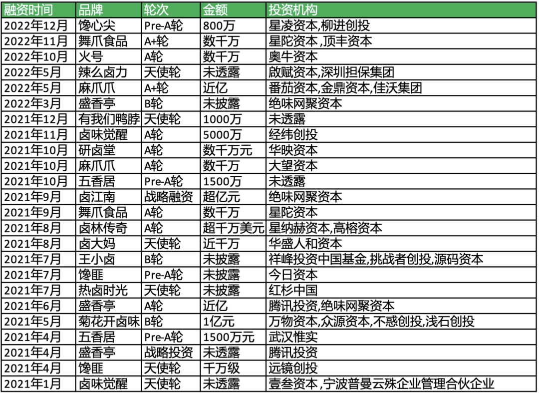 卤味赛道融资情况,36氪据天眼查不完全统计