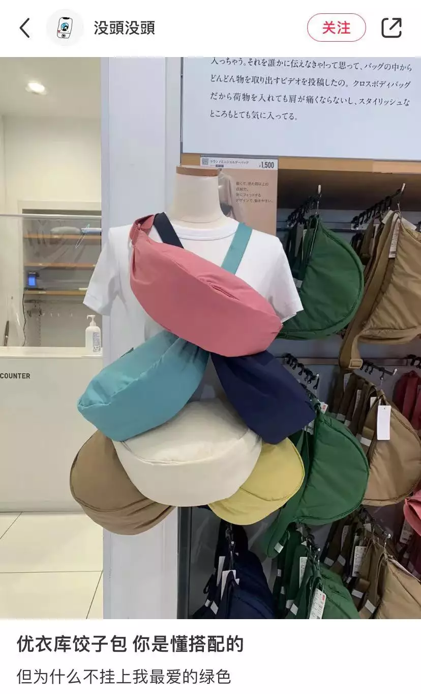 被Lyst评为2022年最佳时尚单品的优衣库饺子包有多达8种颜色 图源:小红书