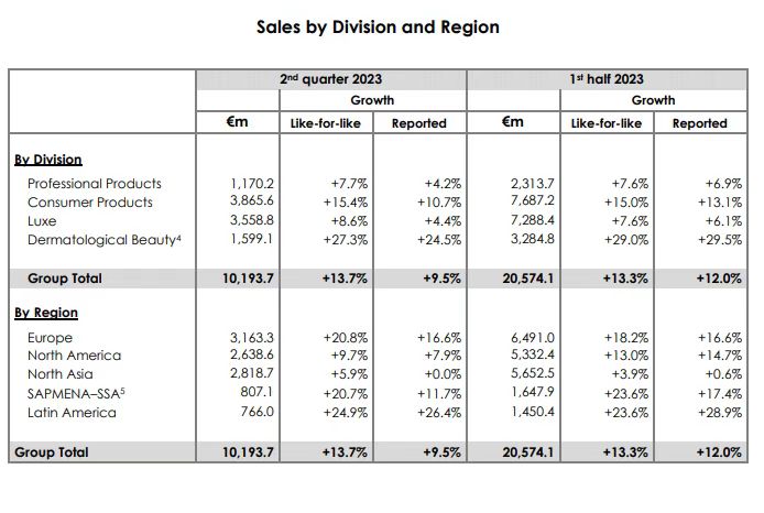 同样是今年的上半年,欧莱雅的大众化妆品部门销售规模罕见重回四大业务部门第一,增速达15%,高端化妆品部门的销售规模虽然紧随其后排名第二,但增速垫底,仅为7.7%。