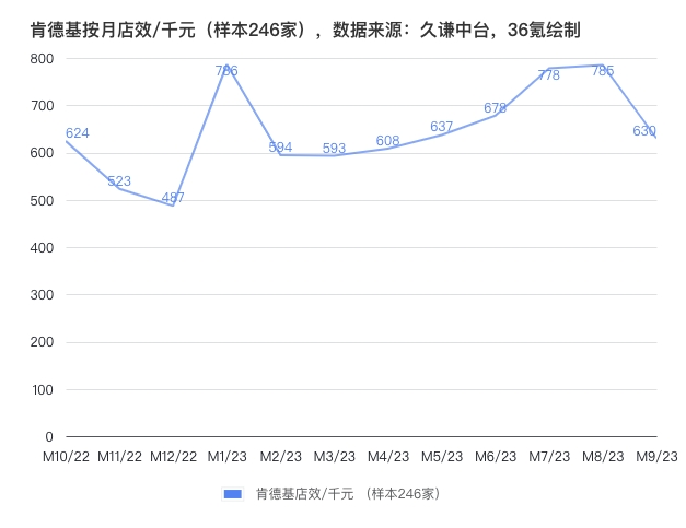 肯德基中国按月店效情况,数据来源:久谦中台(样本店),36氪绘制