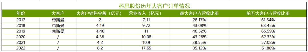 图:科思股份大客户订单情况,来源:历年财报