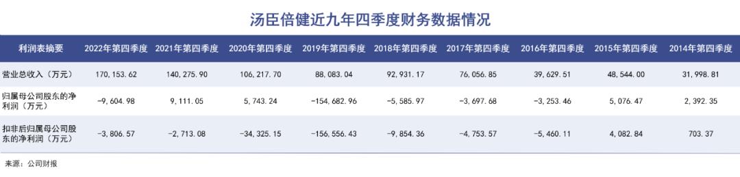 这已经是汤臣倍健近十年来的第六次四季度亏损,大概率也是第八次扣非净利润亏损。