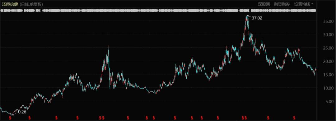 这种经营上的困难性反映在汤臣倍健的股价上也是清晰可见的。目前,汤臣倍健股价在16.5元左右,仅仅相当于2019年的水平,五年来几乎是原地踏步。