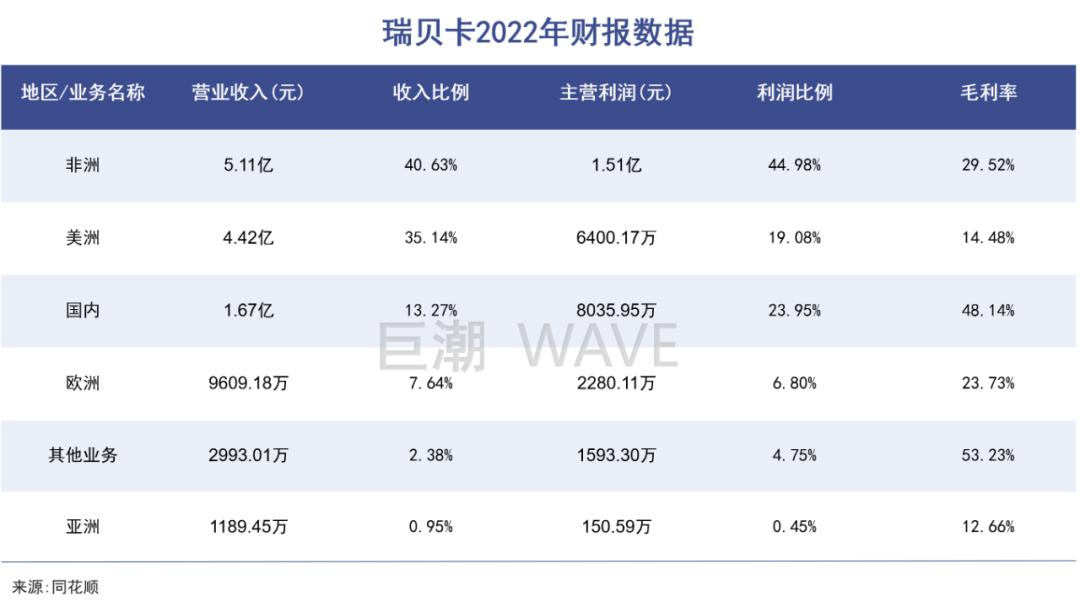 非洲地区的盈利能力还要更强。近五年来,瑞贝卡非洲地区的毛利率都要高于欧美。2022年,非洲市场贡献了最多的收入和利润,且毛利率接近30%,美洲则是14%。