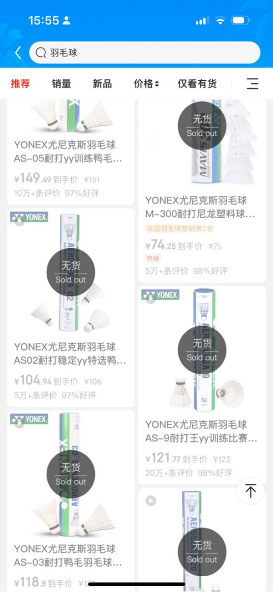 “他们从刚开始涨价那会就不卖了,想着就是到价格最高点再出手。”鲨鱼说。事情的发展也印证了鲨鱼的话,从5月开始,各大电商平台尤尼克斯等知名羽毛球品牌商品开始显示断货。对于这次断货,鲨鱼判断不是意外,“根本没断货,就是有人不想卖。”