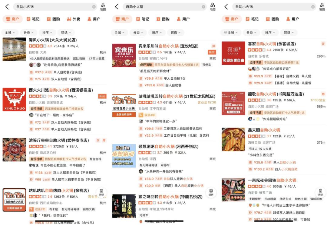 小火锅算是自助餐里面比较火热的品类,打开某生活服务平台,笔者社区周围的自助小火锅有很多家,收费大概在29.9-59.9之间。就连海底捞、鸿姐老火锅、哥老官们都纷纷入局,推出自助形式的火锅。