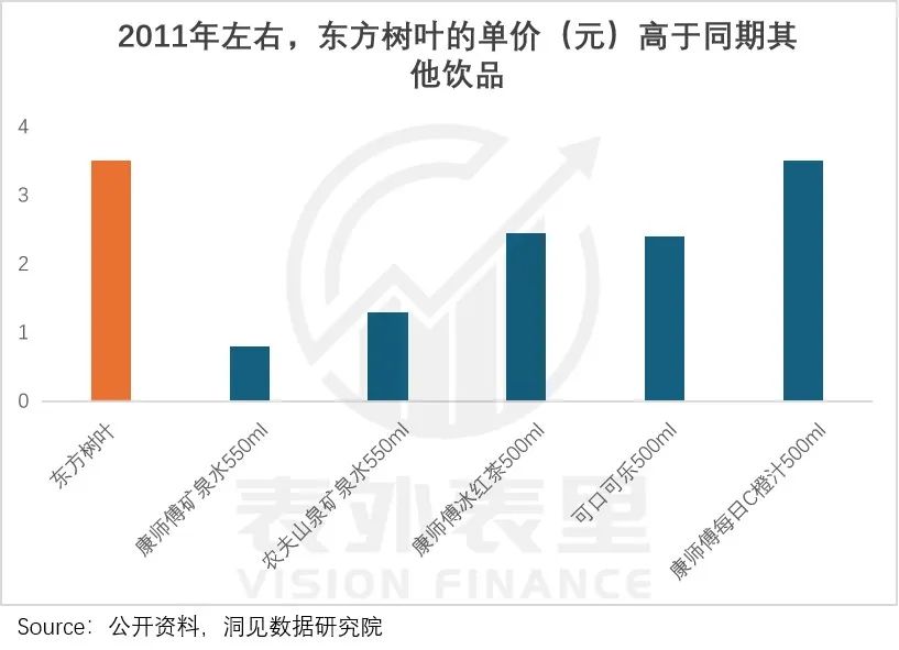 东方树叶2011年上市时售价高达3.5元/瓶,比当时畅销饮品冰红茶和可口可乐都贵,后续还一路涨到了5块,整个无糖茶市场也在4-7元之间居高不下。