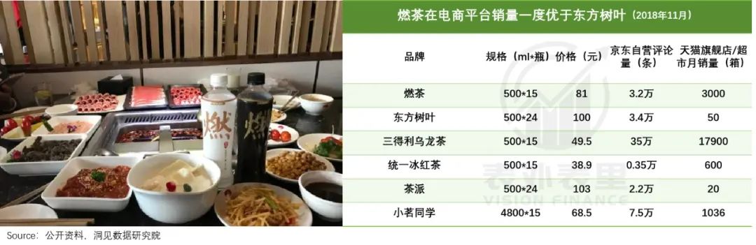可以看到,在燃茶爆火同期,可口可乐推出了无糖茶“淳茶舍”,娃哈哈也上架了“安化黑茶”和“一茶”。