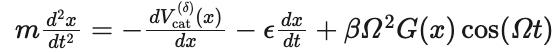 其中G (x) 暂时为无约束函数,β和Ω分别为猫中振动的振幅和频率。此类驱动项模拟了在时间振荡场中移动或受到周期性强迫的粒子。