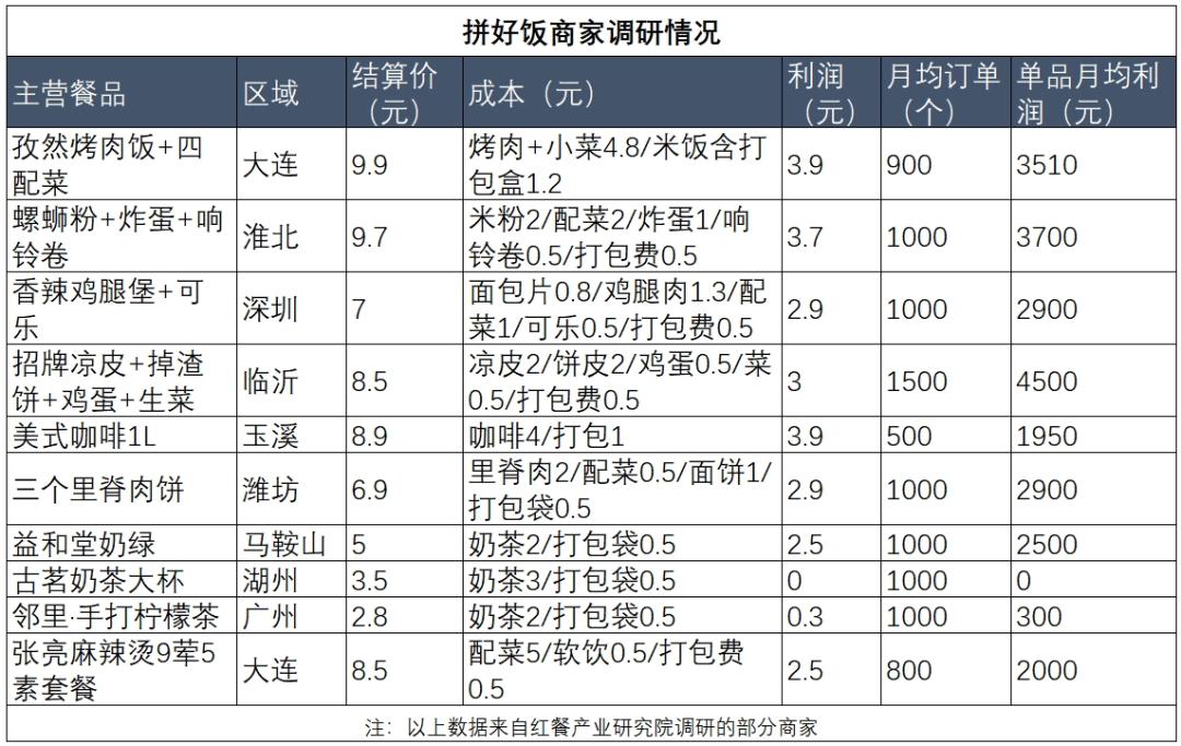 拼好饭商家调研情况