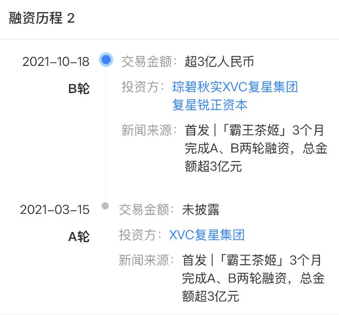 霸王茶姬的两轮融资 图源 / 天眼查