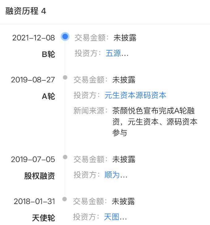 茶颜悦色的4轮融资 图源 / 天眼查
