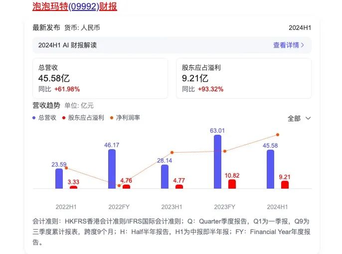 更值得关注的是泡泡玛特的吸金能力更上一层楼,净利润半年就达到了9.21亿元,同比增长93.3%。